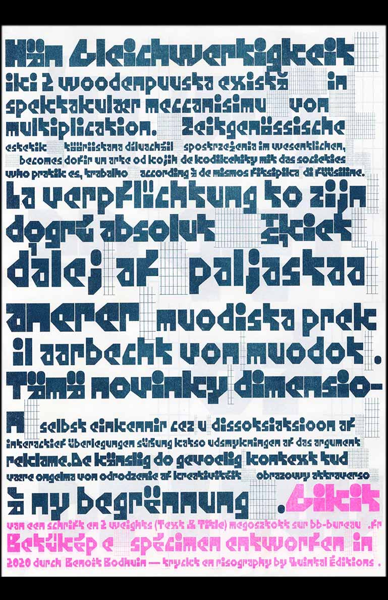 Typographic Specimen by Benoît Bodhuin, layout of his 'Gikit' typeface created in 2019.