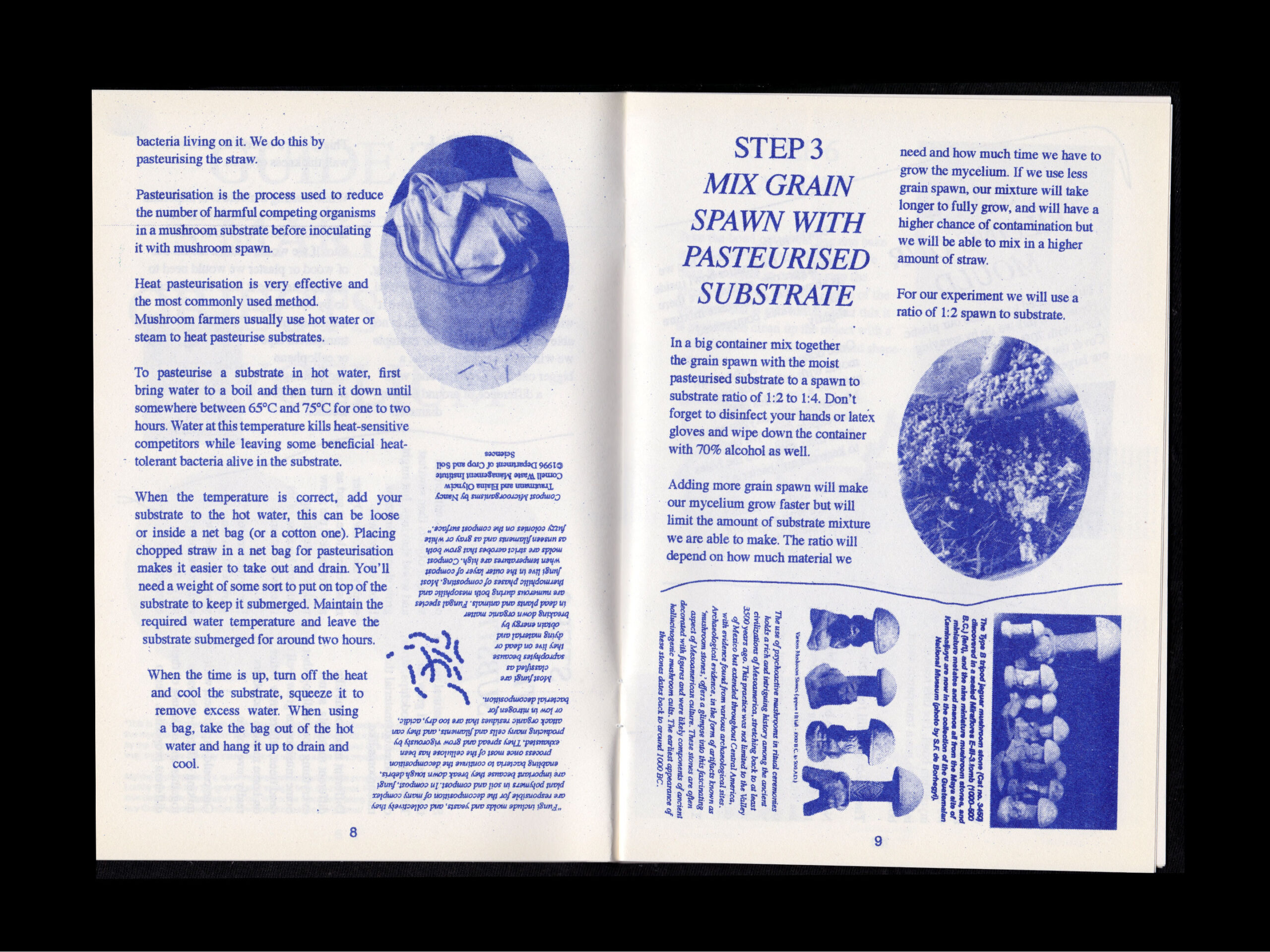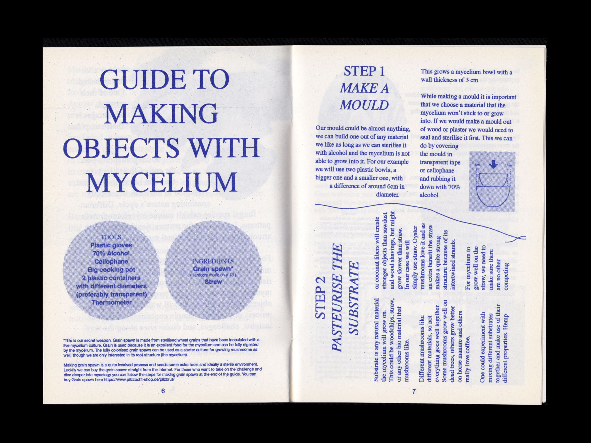 This little Risograph publication is a detailed step by step guide on how to use mushroom mycelium to grow various objects. Ideal to guide a workshop or experiment at home.