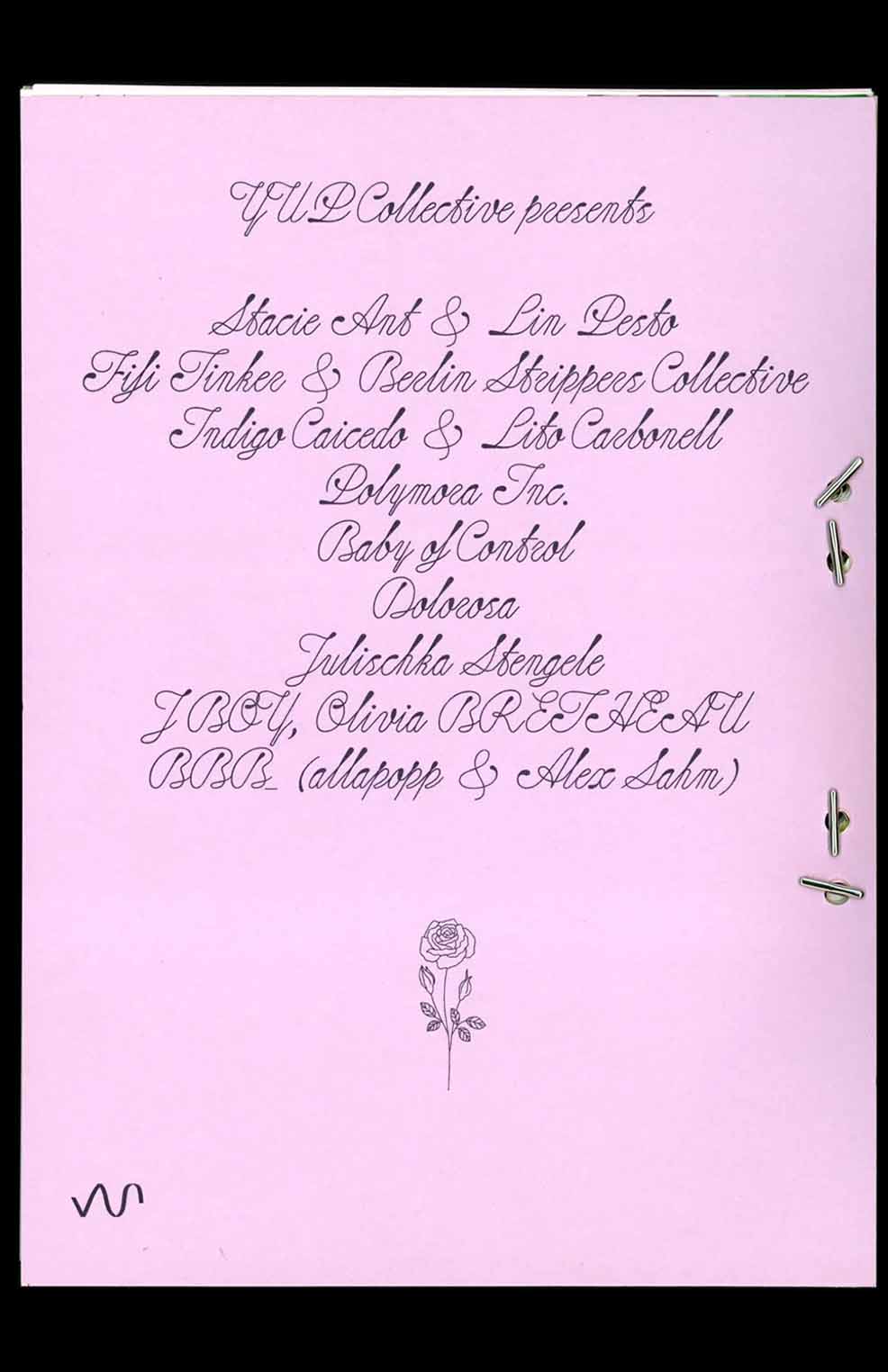 Contributions from Stacie Ant & Lin Pesto, Fifi Tinker & Berlin Strippers Collective, Indigo & Lito Carbonell, Polymora Inc., Baby of Control, Dolorosa, Julischka Stengele, J BOY, Olivia BRETHEAU, BBB_(allapopp & Alex Sahm)