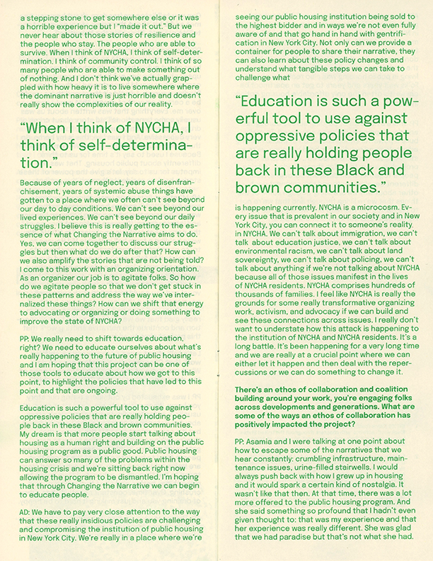 “The stories in the zine really showcase stories of resilience and advocacy and joy and belonging that are often not like the stories you hear when public housing is covered in the news or media.”