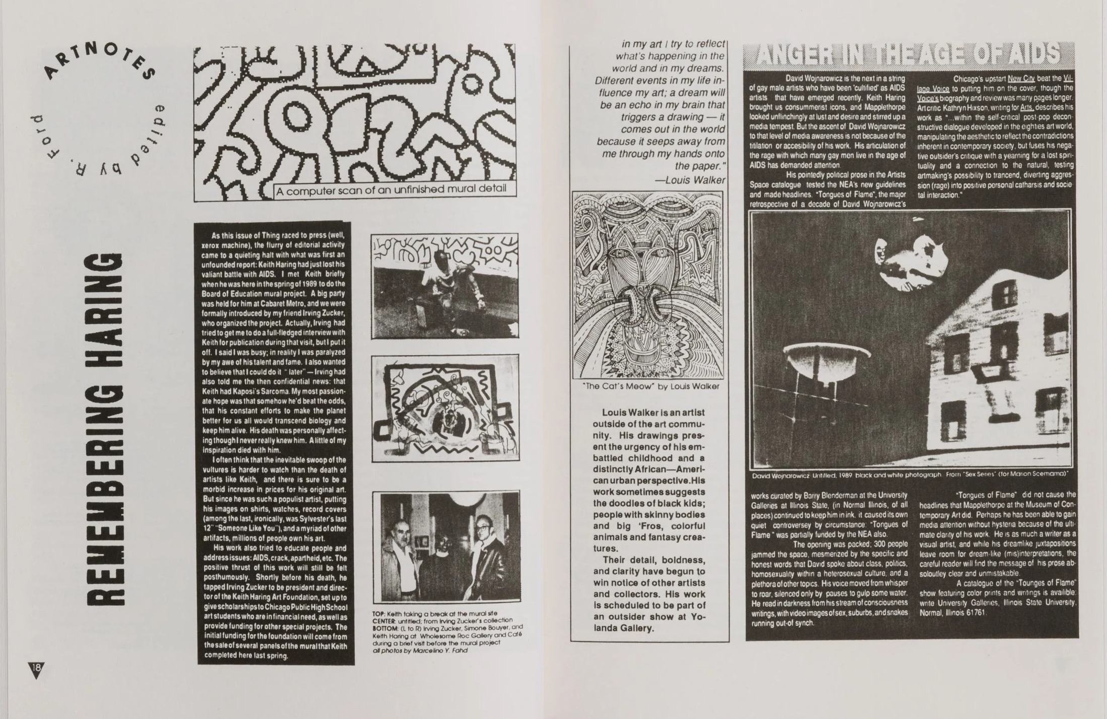 “As House music thrived, THING captured the multidisciplinary nature of the scene, opening its pages to a wide range of subjects: poetry and gossip, fiction and art, interviews and polemics. The HIV/AIDS crisis loomed large in its contents, particularly in the personal reflections and vital treatment resources that it published. An essay by poet Essex Hemphill was published alongside the gossip columnist Michael Musto and Rupaul dished wisdom alongside a diary from the March on Washington for Lesbian, Gay, and Bi Equal Rights and Liberation. Joan Jett Blakk’s revolutionary presidential campaign is contained in these pages, as are some of the most underground, influential literary voices of the time, such as Dennis Cooper, Vaginal Davis, Gary Indiana, Marlon Riggs, David Wojnarowicz, and even David Sedaris.