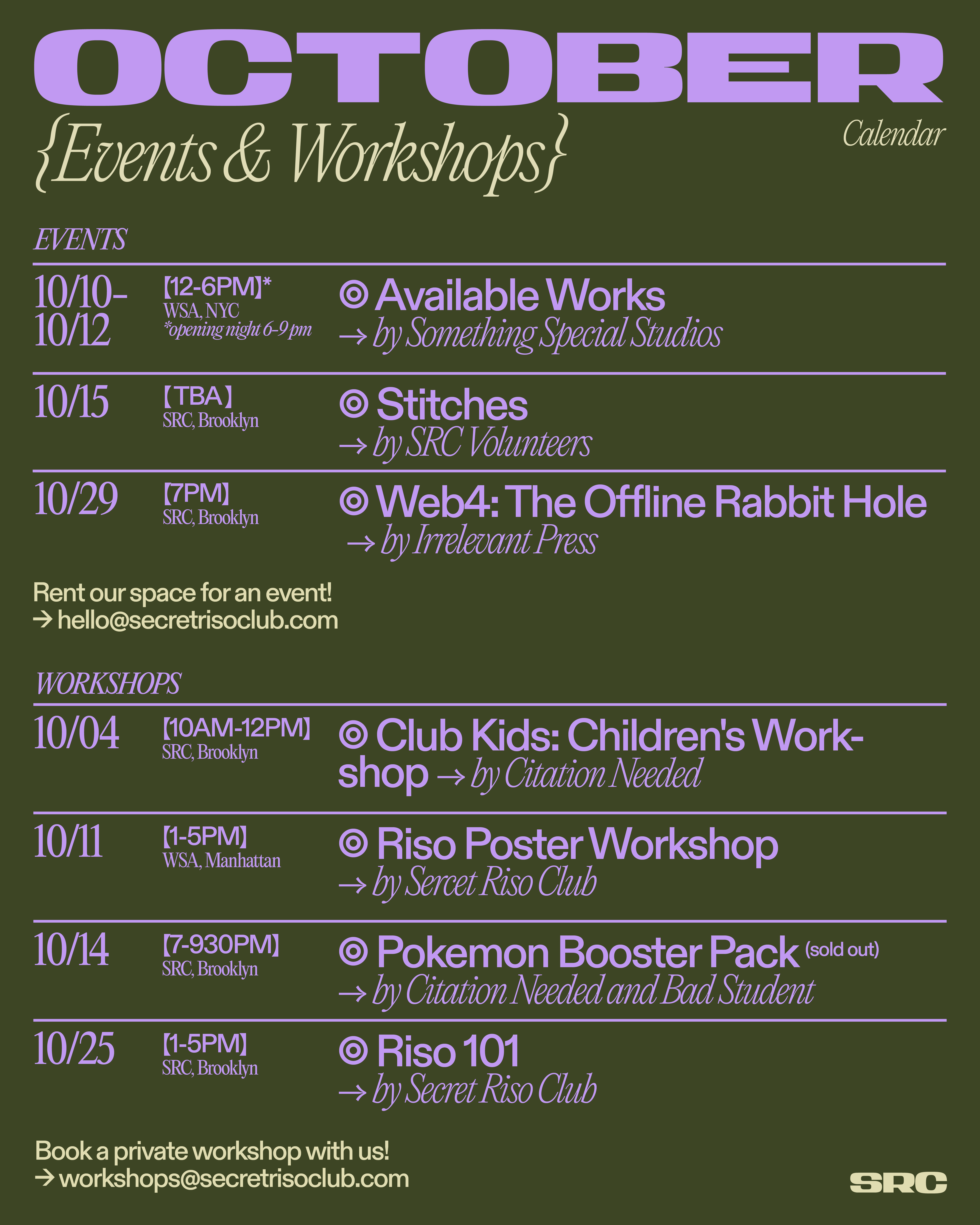 ︎ Secret Riso Club is an artist-run space that fosters a creative practice at the intersection of art—design—learning—publishing—printing—activism and community building. In our practice, we work to build a platform that serves as a collaborative space for developing ideas and new projects. ︎